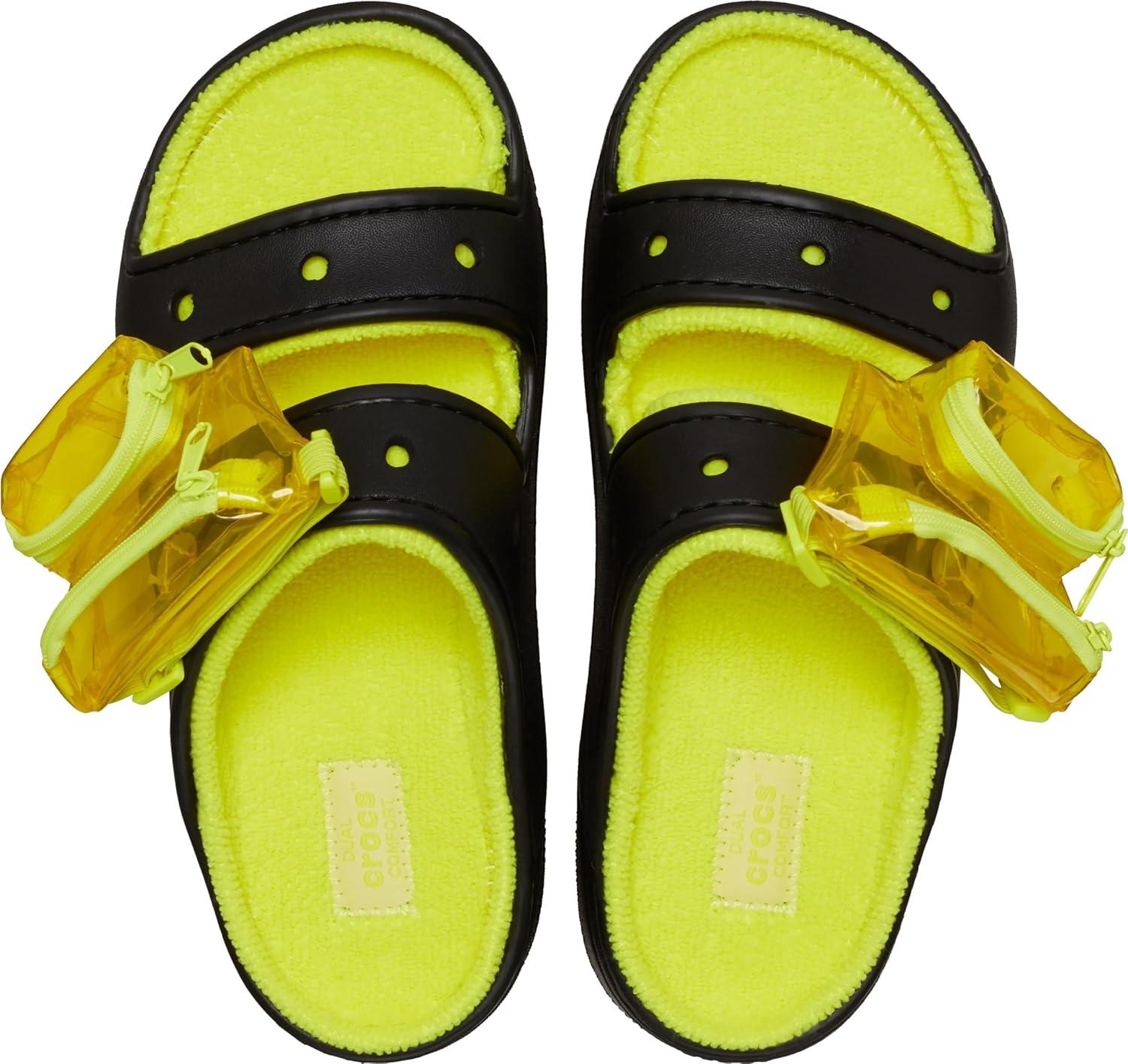 Crocs Unisex Adult Classic Cozzzy Towel Sandals, Fuzzy Slippers and Slides(Black/Acidity)