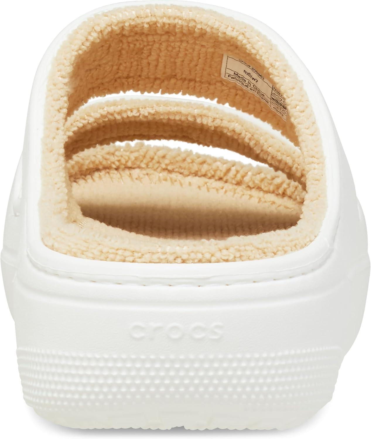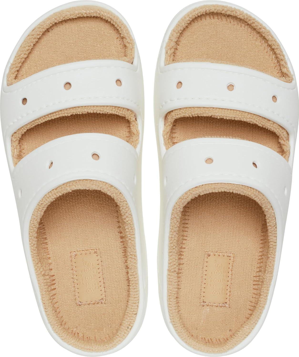 Crocs Unisex Adult Classic Cozzzy Towel Sandals, Fuzzy Slippers and Slides(White/Shitake)