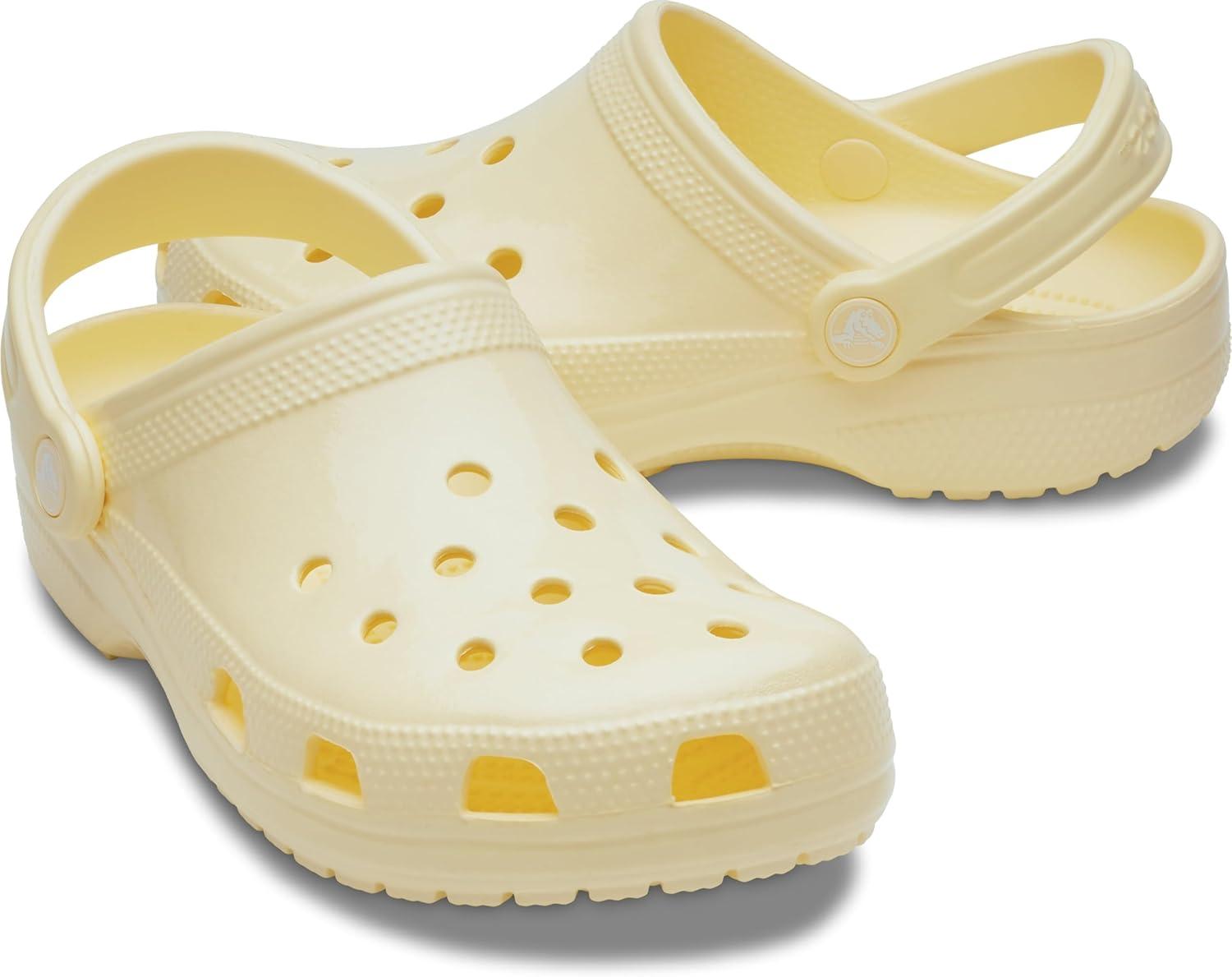 Crocs Unisex-Adult Classic Sparkly Clog, Metallic and Glitter Shoes(Buttercream)