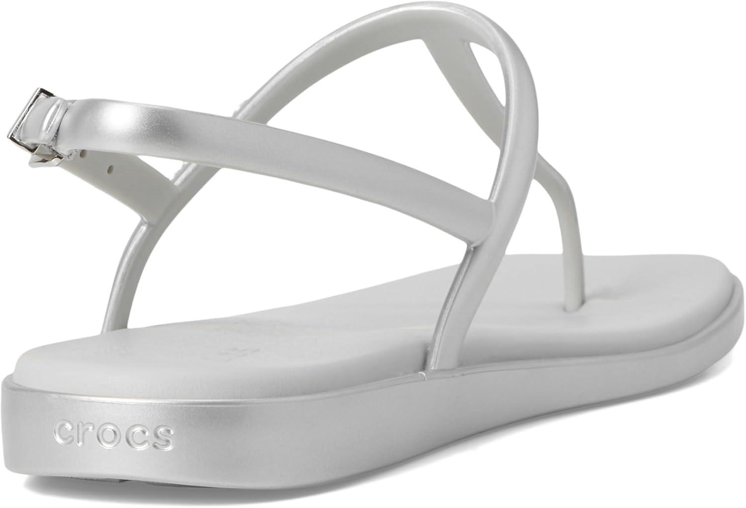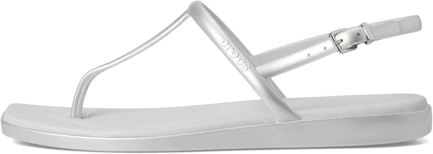 Crocs womens Miami Toe Loop Sandal(Metallic Silver)