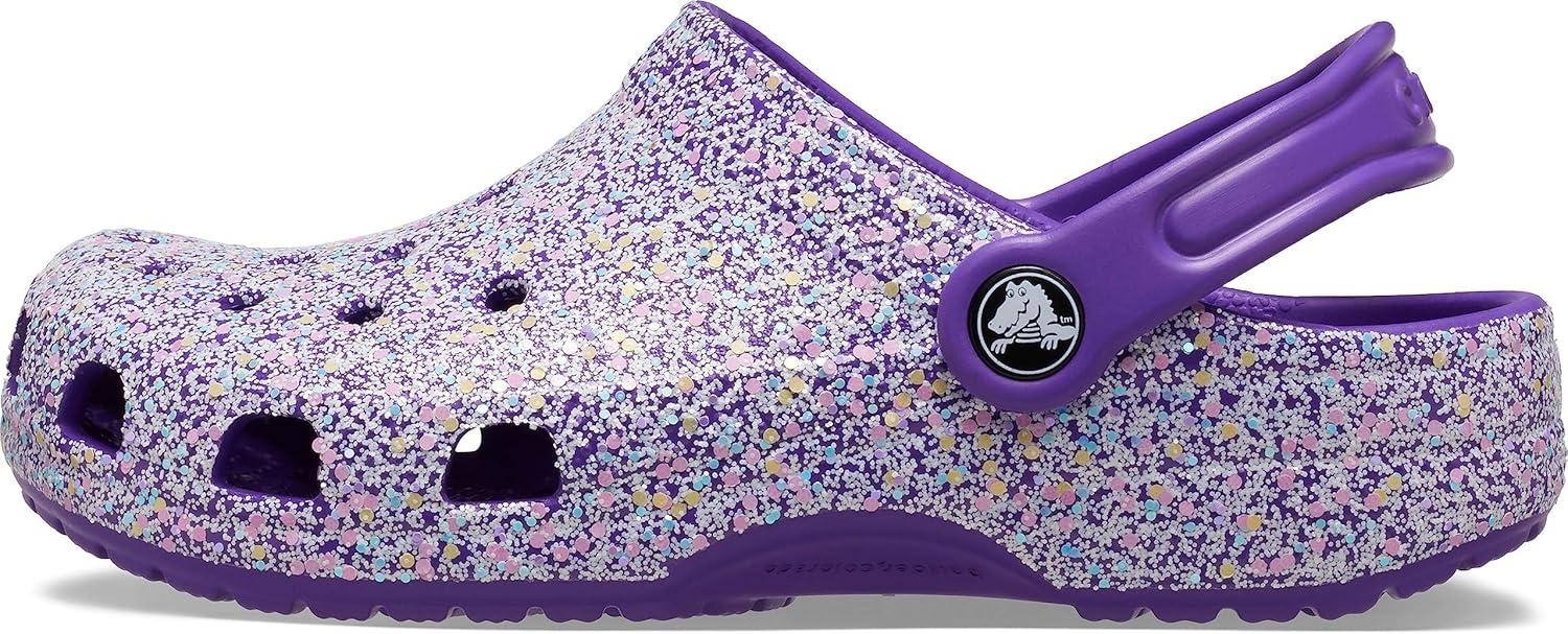 Crocs Kids’ Classic Glitter Clog(Neon Purple/Multi)