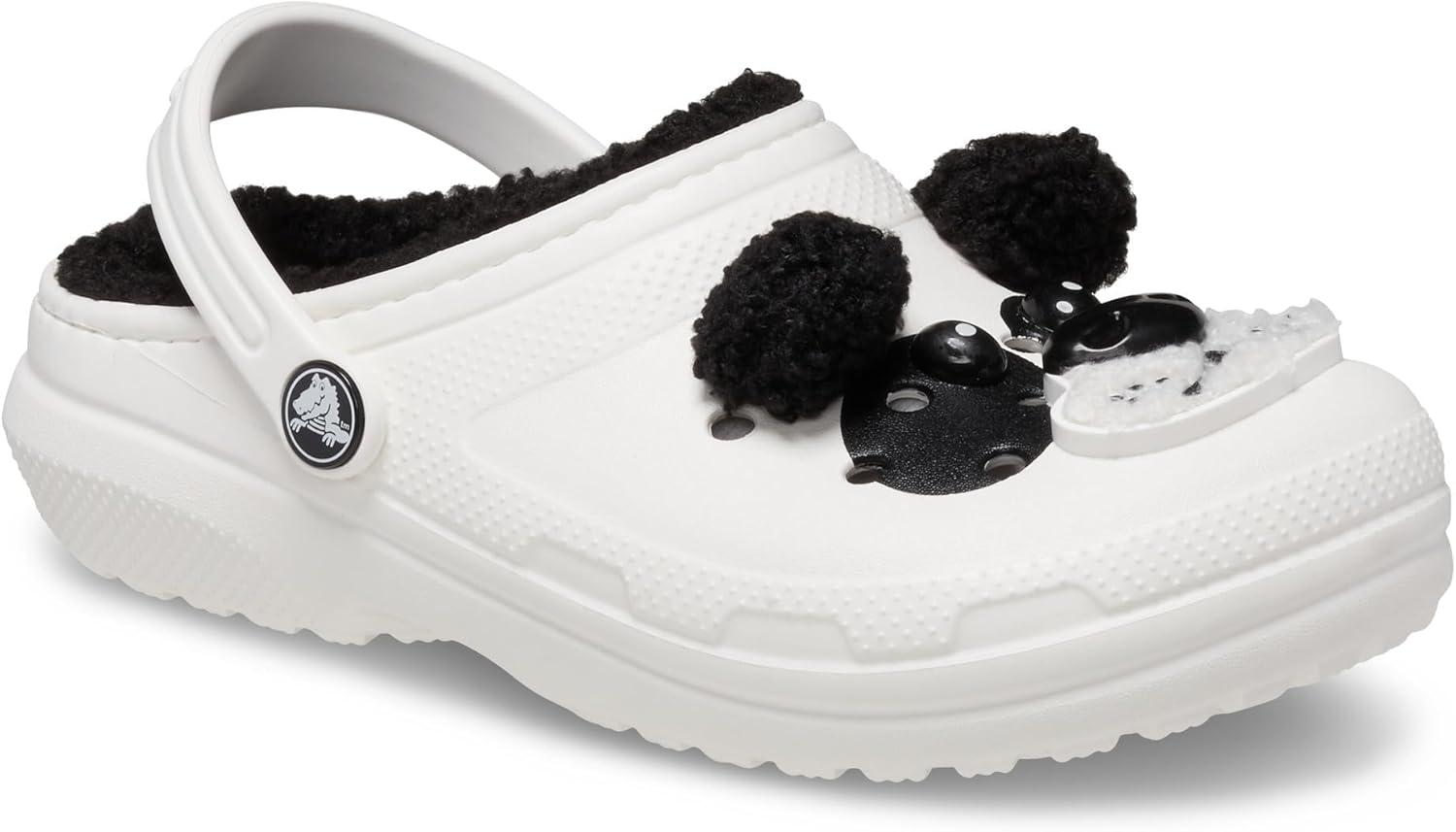 Enchanting adventures await: Explore in style donning Crocs Kids Classic Lined I Am Clogs are perfect for little adventurers. These adorable slip-ons feature playful panda and brown bear designs, complete with fixed ladybug wings for a whimsical touch. Crafted with a lightweight EVA upper and outsole, and cozy faux fur lining and insole, they offer supreme comfort. The closed-toe design and ventilation ports ensure breathability, while pivoting heel straps make them easy to slip on and off.
