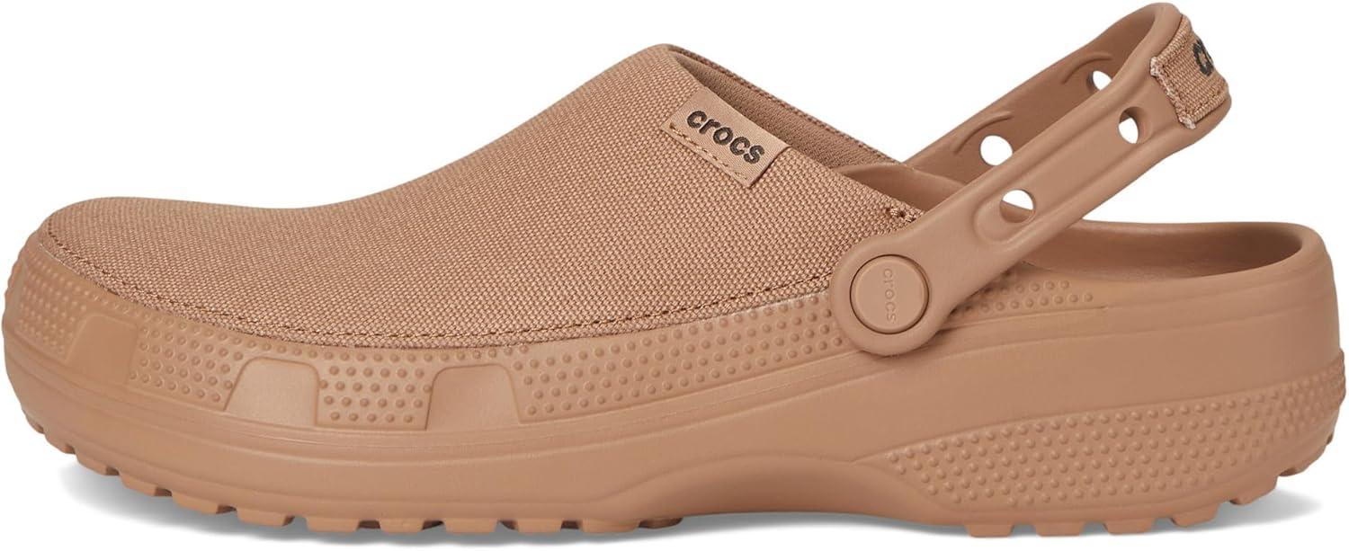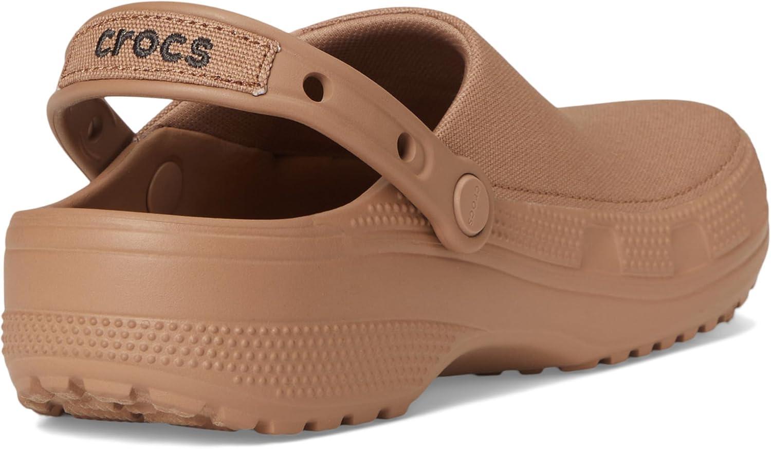 The Crocs Classic Crafted Canvas Clogs redefine versatile style with their sophisticated canvas upper, perfect for dressing up or down. Whether paired with chinos for a polished look or denim for casual comfort, these waterproof clogs bring effortless style to any outfit. These come with a Croslite outsole for durability and support, a pivoting heel strap for a more secure fit, and iconic Crocs Comfort insole for lightweight and flexible 360-degree comfort. Ideal for those who value both function and fashion, the Classic Crafted Clog is a must-have for any wardrobe. Plus, the Jibbitz holes on the heel straps make it easy to personalize your look even more. Unlined. Low-top design. Round toe shape.