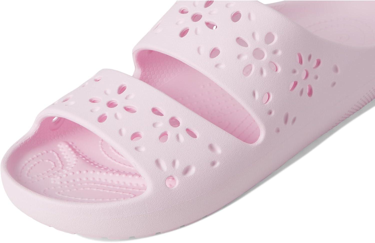 Crocs Unisex-Adult Classic Sandals 2.0 with Floral Cutout Design Slide(Pink Milk)