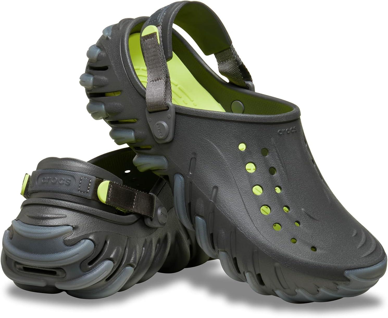The Crocs Echo Ro Clogs bring bold design and upgraded functionality to the Echo collection, offering dual-density comfort with their LiteRide drop-in footbed and Croslite EVA upper. Featuring a durable rubber outsole for enhanced grip and an adjustable backstrap for a secure, custom fit, they are designed to keep up with your day without compromising style. The sculpted details add a modern edge, while Jibbitz charm compatibility lets you personalize your look. They are made of an EVA insole for cushioned comfort. Perfect for those who value comfort, versatility, and standout design, these slip-on clogs are ready for wherever the day takes you. Round toe design.