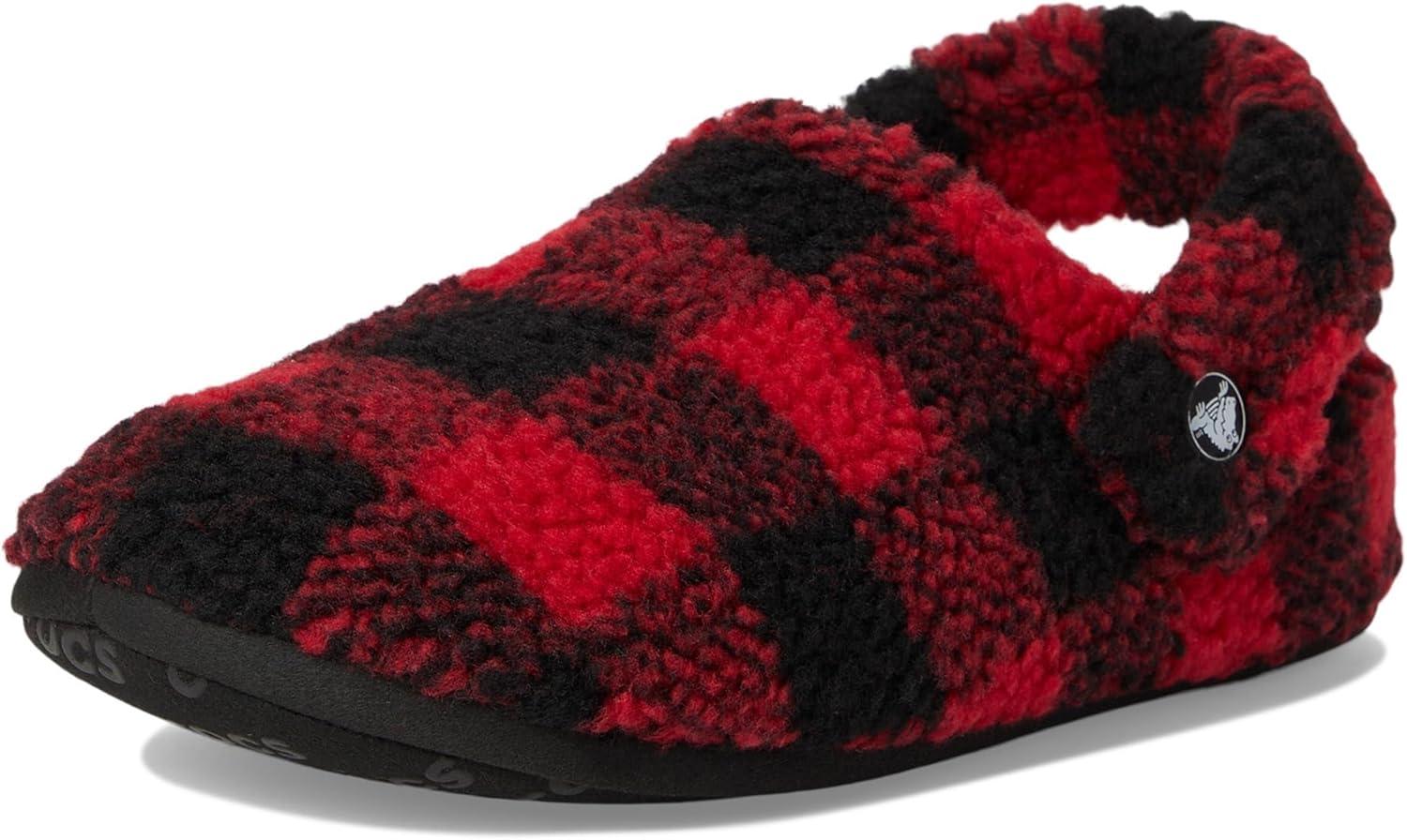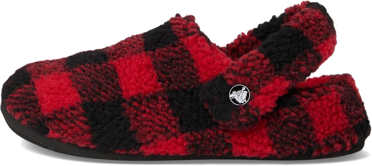 Crocs unisex-child Classic Cozzzy Slippers(Buffalo Plaid/Black/Varsity Red)