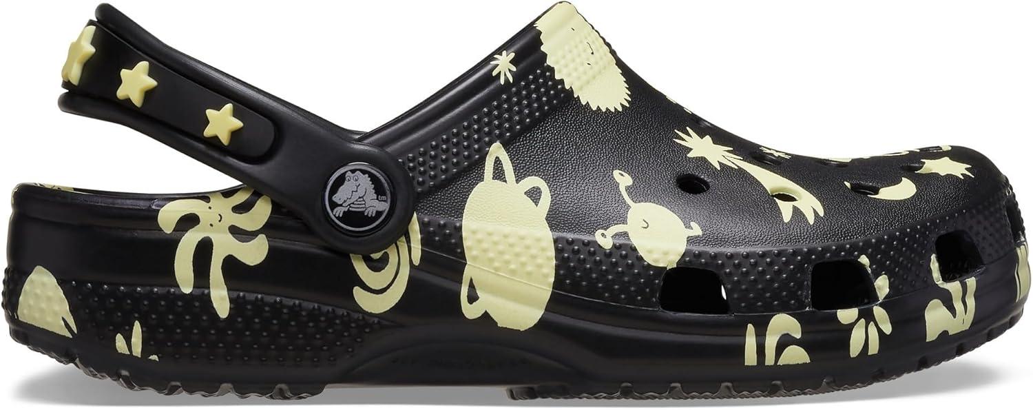 Crocs Unisex-Child Classic Glow in The Dark Clogs (Little Big Kid)(Black Space)