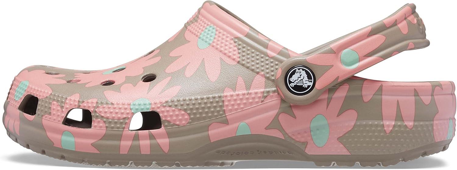 Crocs Women’s Classic Marbled Tie-dye Clogs(Mushroom/Multi Flower)