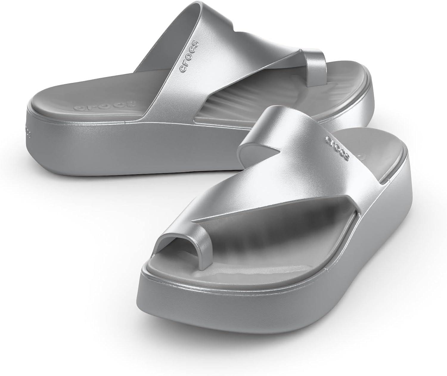 Crocs Women’s Getaway Toe Loop Platform Sandals(Silver)
